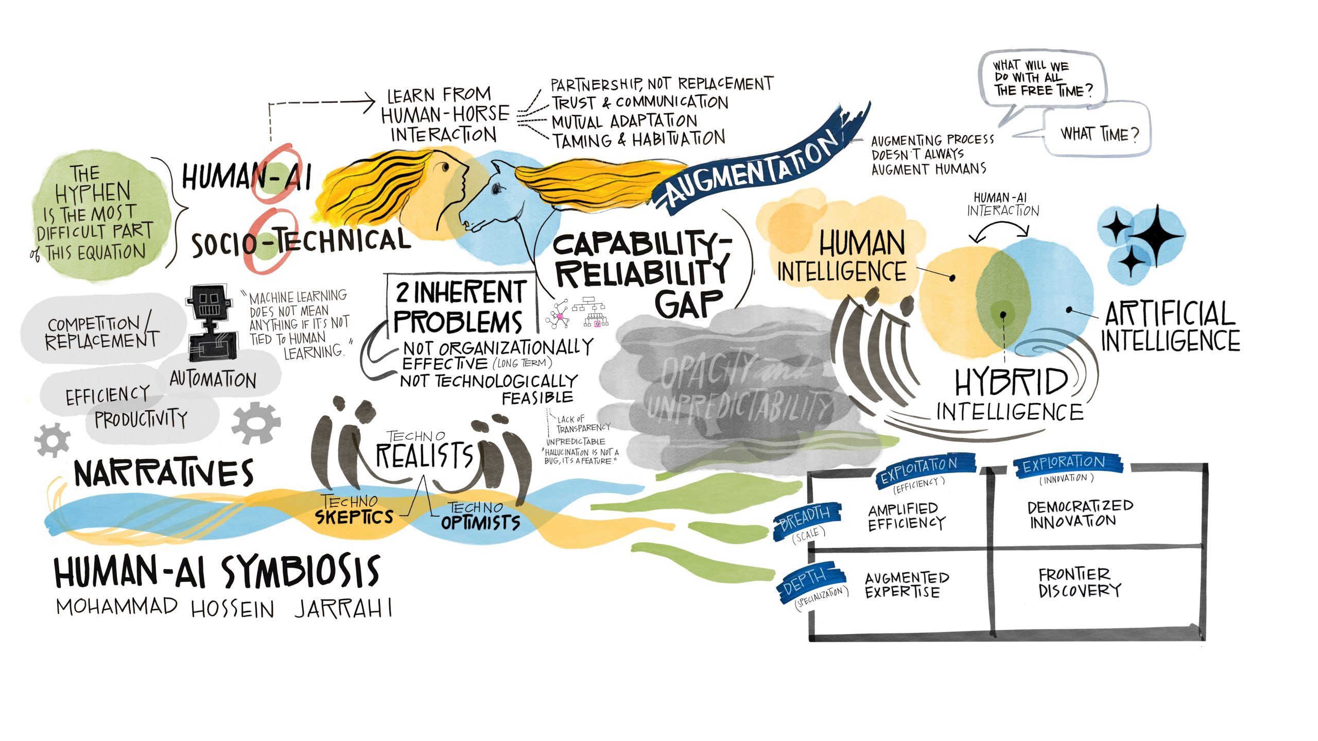 “It’s not just about ‘keeping humans in the loop’ for the last mile (as a judgment check at the very last step), but keeping both humans and AI in the game along the way.” Mohammad Jarrahi – Professor UNC.